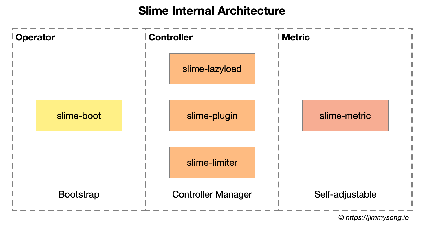 slime-boot:在 Kubernetes 上部署 Slime 模块的 operator。slime-controller:Slime 的核心组件,监听 Slime CRD 并将其转换为Istio CRD。slime-metric:用于获取服务 metrics 信息的组件,slime-controller会根据其获取的信息动态调整服务治理规则。