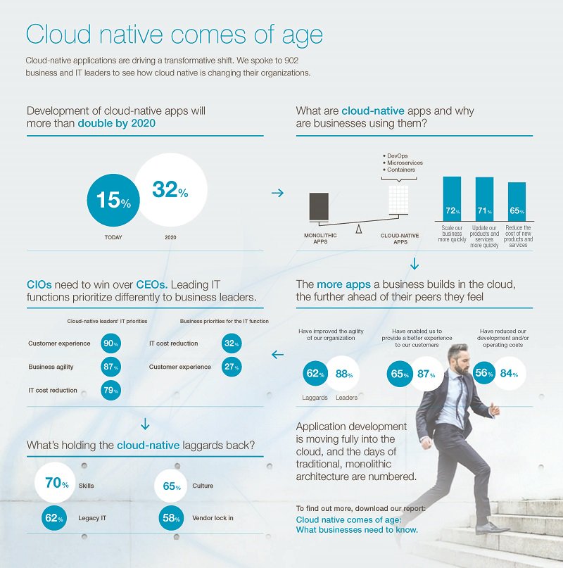 云原生应用到 2020 年将比目前至少翻一番,下图是 Marc Wilczek 的调查报告。