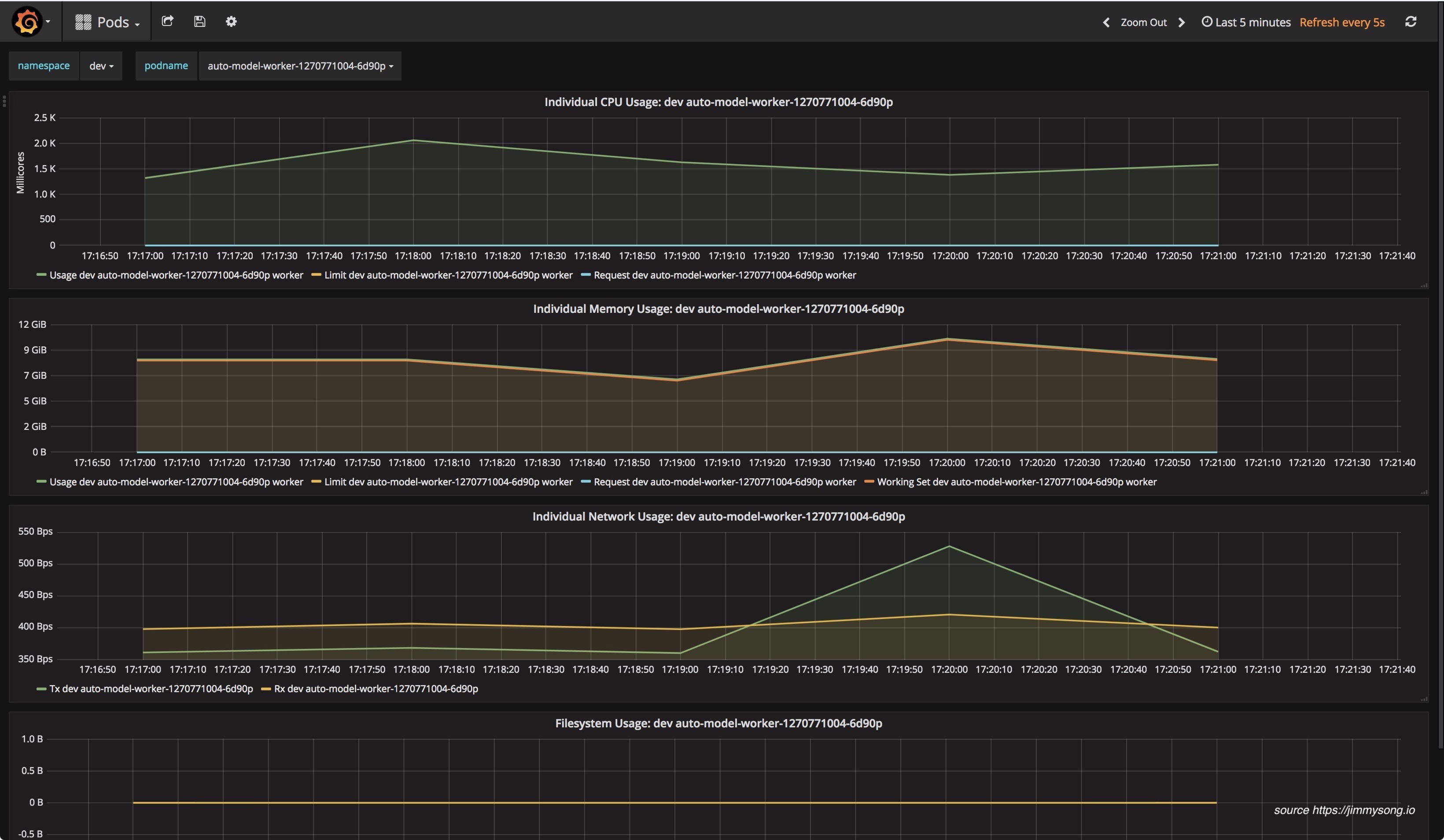 该监控可以看到单个用户的 namespace 下的所有资源的使用情况。