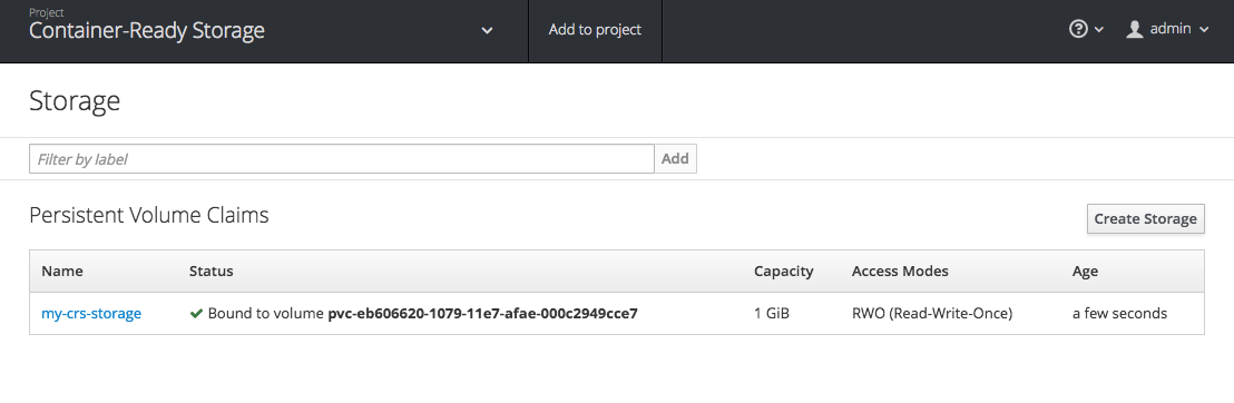 在仍运行着 crs-storage 项目的 OpenShift 虚拟机中执行: