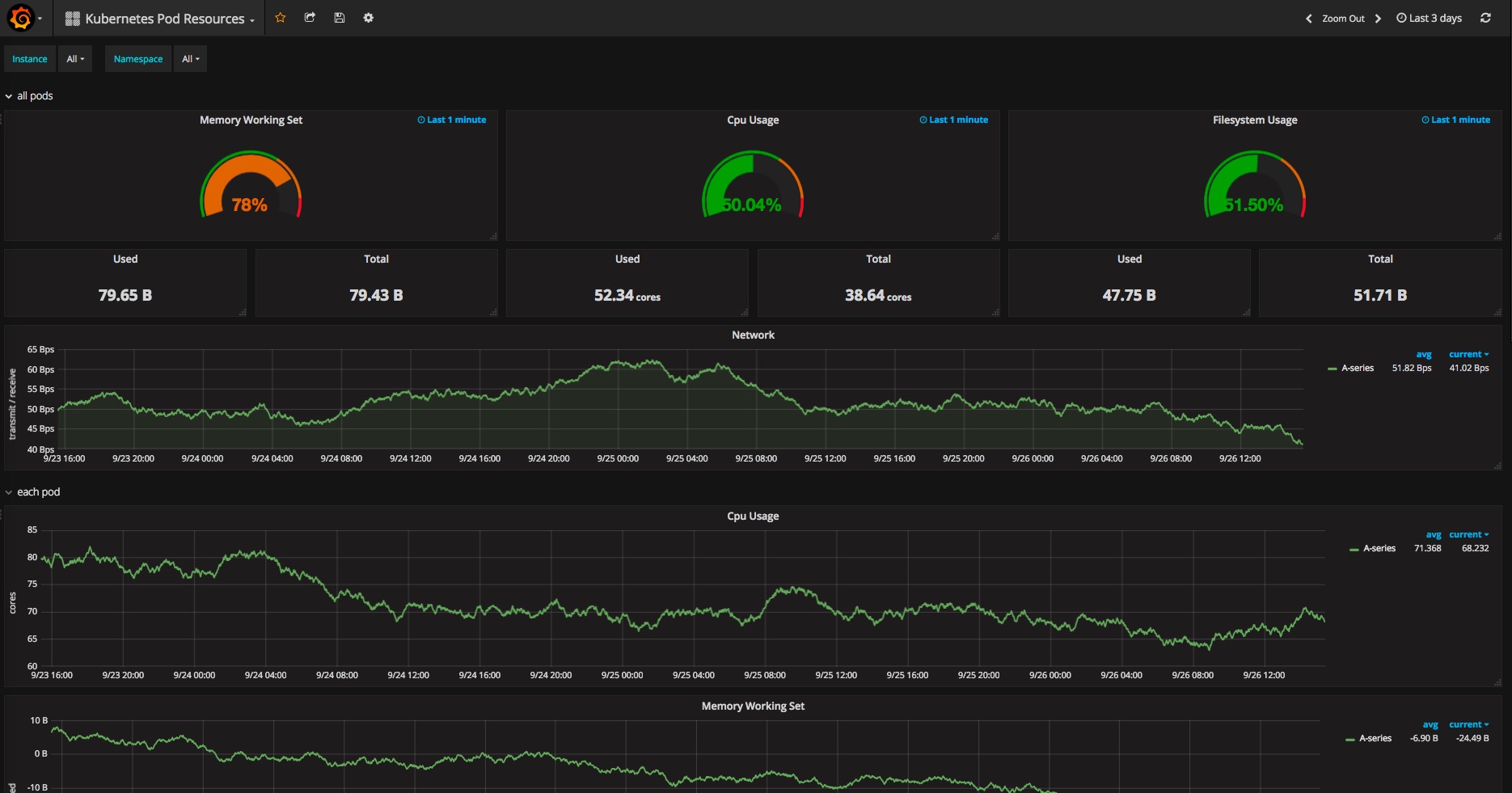 prometheus-monitoring.yaml 文件中有一个 Job 就是用来导入 grafana dashboard 配置信息的,如果该 Job 执行失败,可以单独在在 monitoring 的 namespace 中启动一个容器,将 manifests/prometheus 目录下的 json 文件复制到容器中,然后进入容器 json 文件的目录下执行: