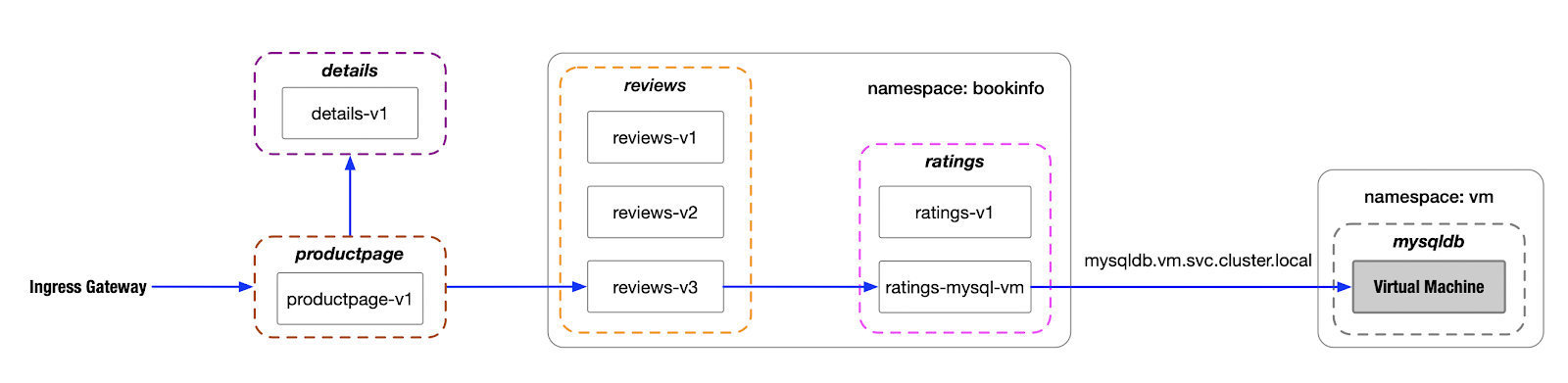 - 将虚拟机中的 MySQL 服务作为 ServiceEntry 引入到 Mesh 中并作为 rating 服务的后端;